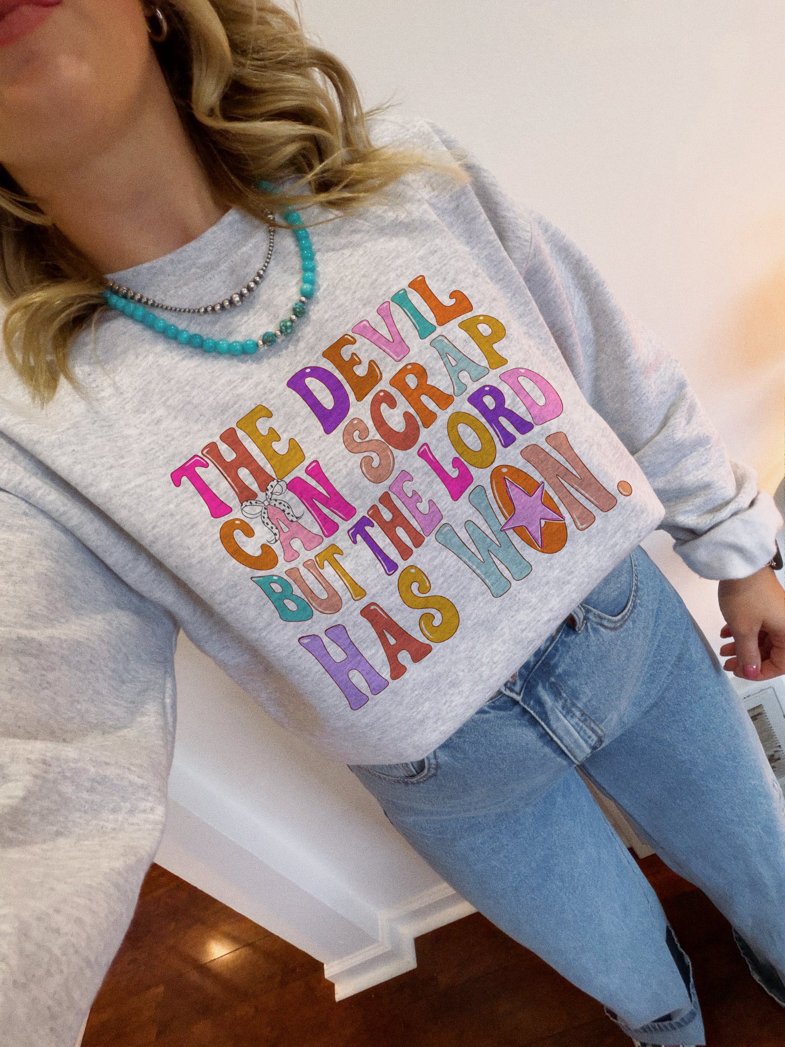 Lord Has Won, by Walking A provides a unisex fit on an ash, white, or sand tee or crew.