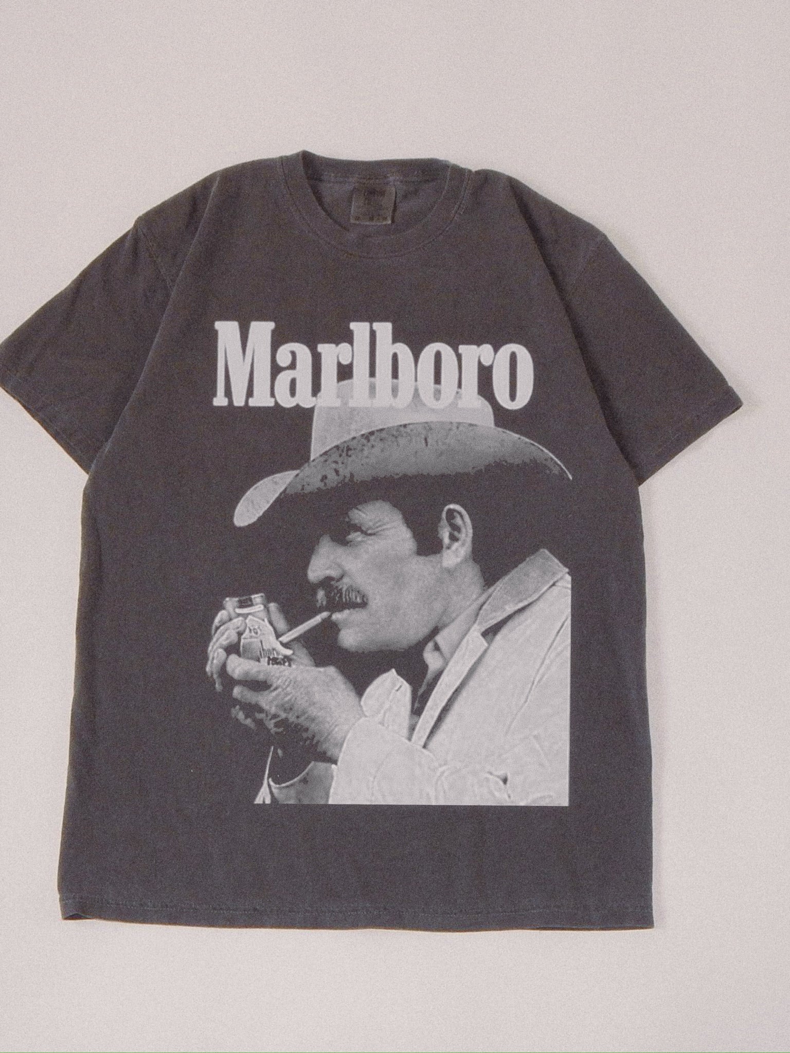 Marlboro Halftone, by Walking A provides a unisex fit on a black tee crew, or hoodie.