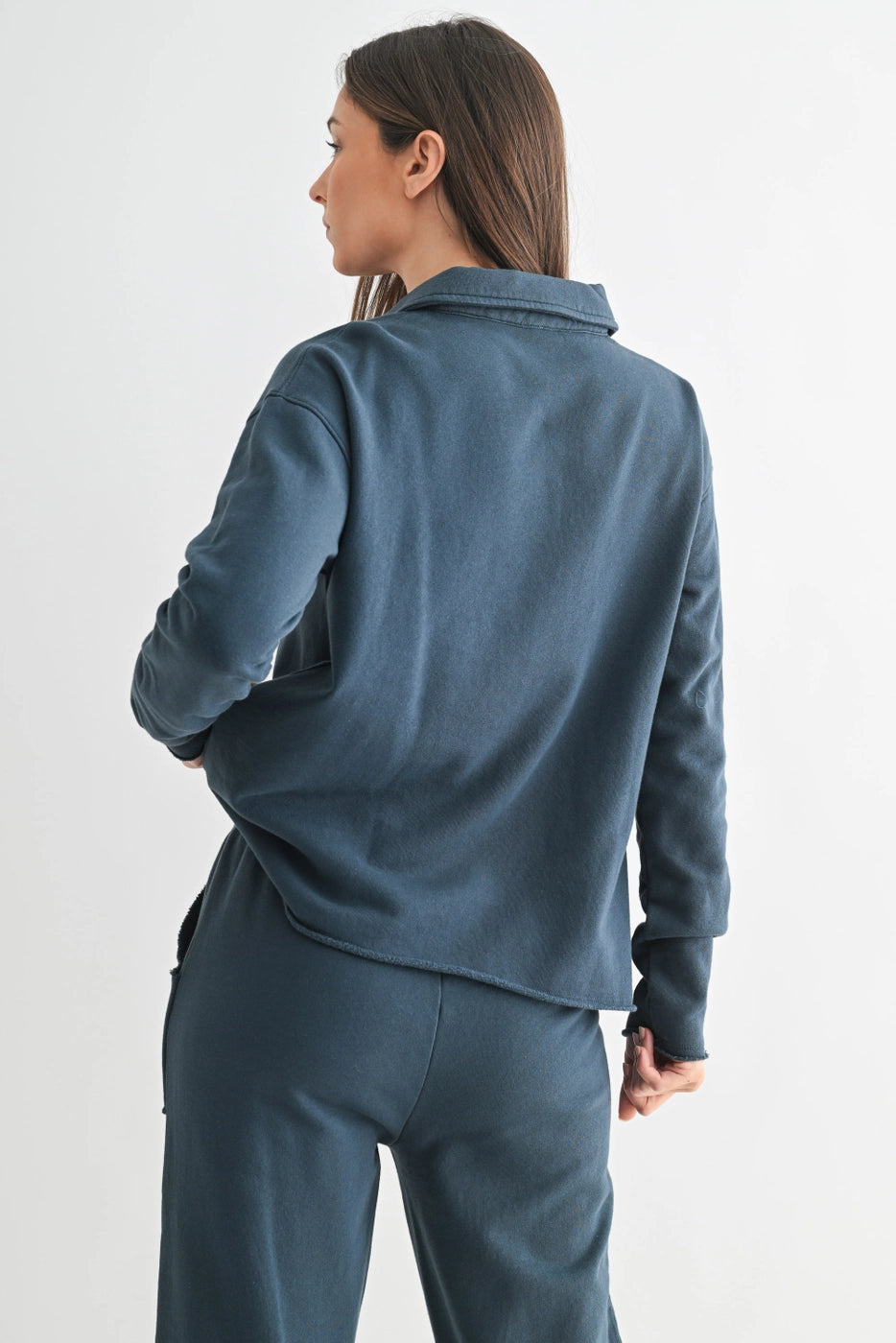 Henley-style long sleeve with a V-neck and raw-edge hem for a vintage look. Perfect for brunch or lunch, this versatile tee pairs effortlessly with denim for a casual yet polished vibe!