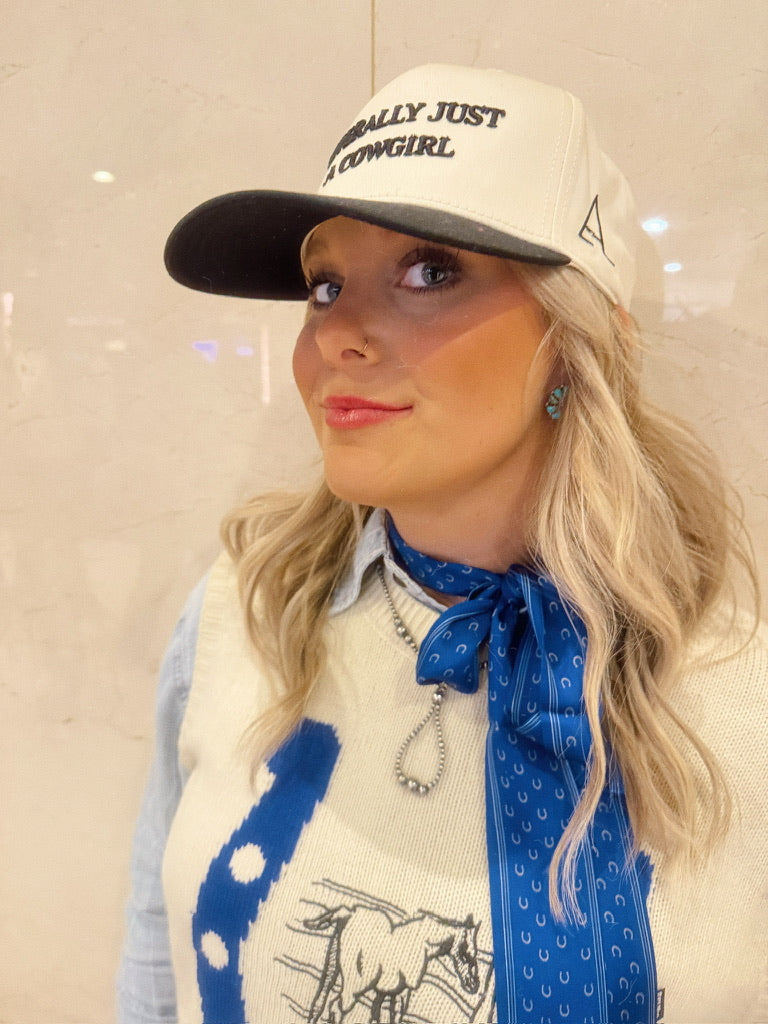 Get the preppy look by pairing it with a collared shirt, tying it in your hair, or giving that LOUIE handbag a Western flare by tying the handles. Again, the options are seriously endless.