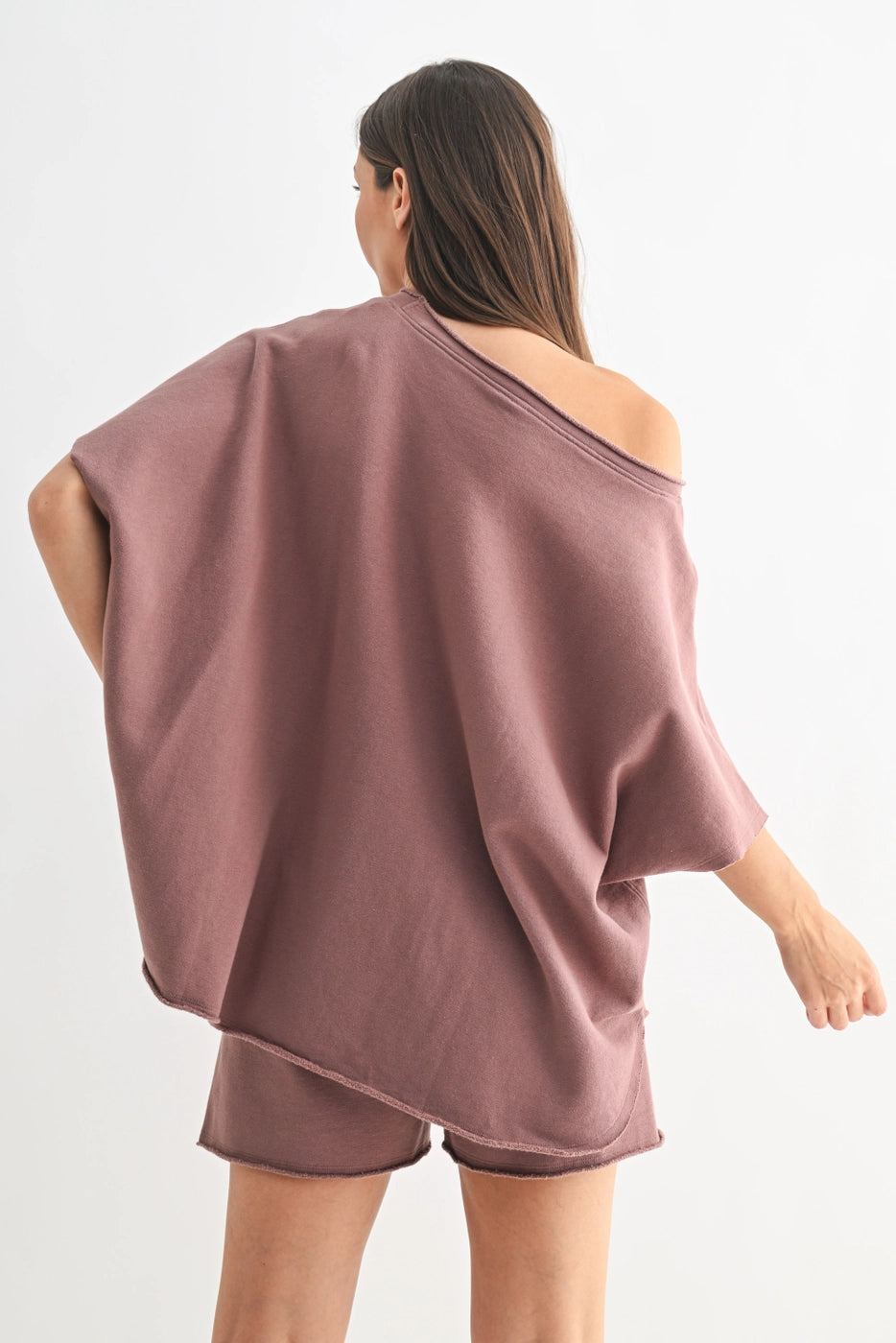 Loose, comfortable dolman sleeve top with elbow-length sleeves and a raw hem for a vintage vibe. Made from 100% durable cotton, offering warmth and coverage. Slight boatneck design, perfect for spring. Garment-washed for a soft, unique feel. Easy to style.